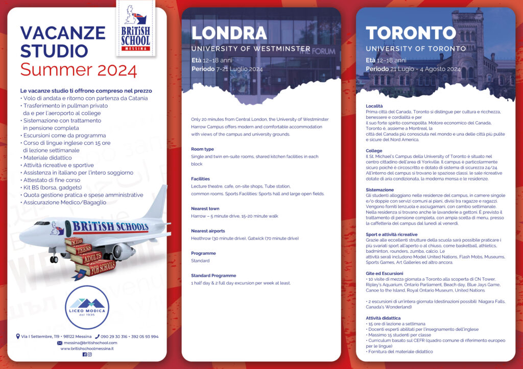 Vacanze studio Estate 2024. Nuove date per Londra (7-21 luglio) e Toronto ( 21 luglio – 4 agosto).